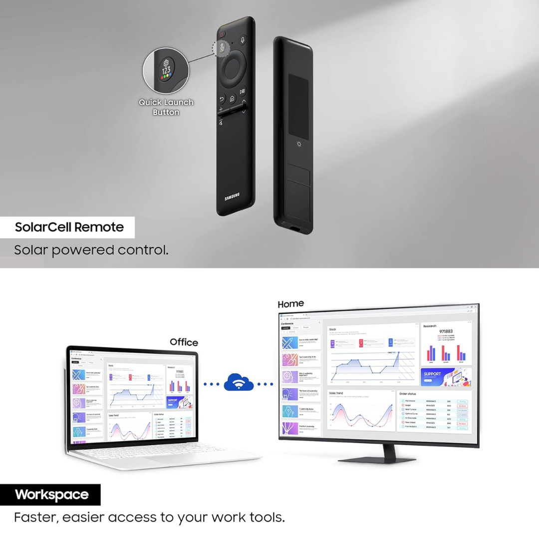 Samsung LS43DM700UWXXL combines spectacular 4K clarity, built-in smart features, and seamless wireless connectivity — offering a complete solution for work, streaming, and entertainment without needing a PC.
